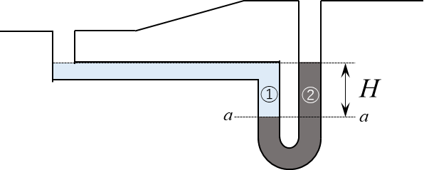 今、U字管のa-a断面を考えたとき、それぞれの液面にかかっている力はつり合っています。